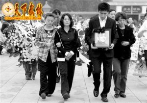 冯志强的家人手捧遗像,神情沉重。本报记者王苡萱摄 本报讯(记者周琦)昨天上午9点, 陈氏 太极 拳宗师冯志强遗体告别仪式在八宝山殡仪馆举行。冯志强亲属及生前弟子、友人等共2000余人冒雨前去送别。 昨天上午,细雨纷纷,不少前来为冯志强送别的群众冒雨站在八宝山殡