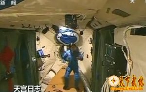 26号晚上是刘洋在天宫一号值守的第二个大夜班,在忙完工作后,她利用值夜班间隙,展示了一段中国功夫。 在忙完飞行器的照料管理、与地面通话结束后,刘洋固定好自己的双脚,简单的热身,然后凝神静气开始了锻炼。 这是一套太极拳,太极讲究身、形、意,强调阴阳平衡,
