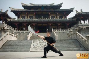 潘霜喜演练的少林六合大刀,又称汉魂霹雳火。其功架:规矩方圆 、 伸缩开合 、 六合贯通。劲力:纵横交错 、 刚柔曲直,刹那间发放山崩地裂的霹雳悍劲。神韵:勇猛彪悍 、 急燥刚烈,有金刚猛士劈山开阵之势。表现了大汉文化雄浑拙朴 、刚野强劲的尚武之魂。