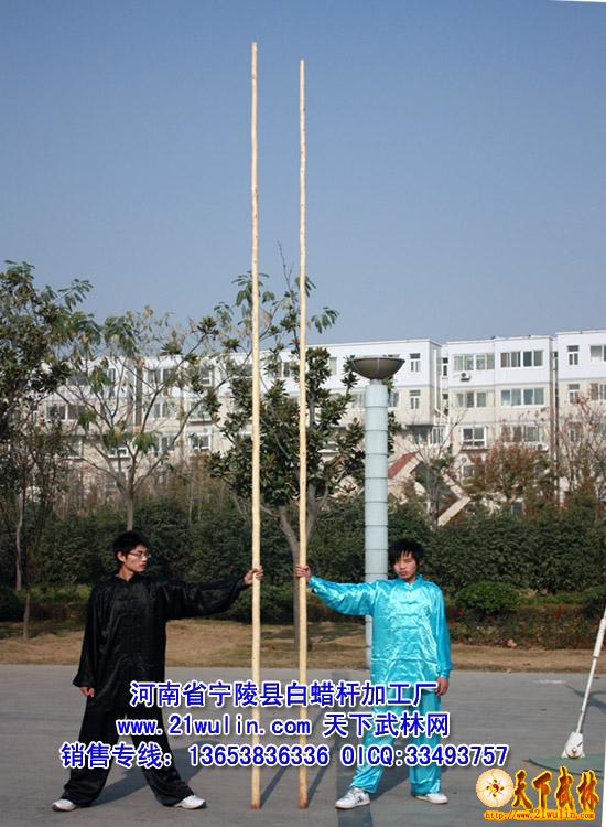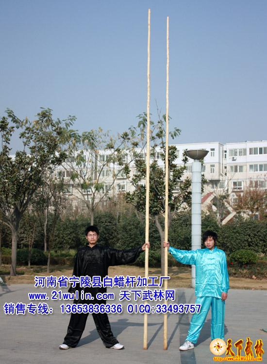 河南省宁陵县白蜡杆加工厂始建于1978年,位于素有“白蜡杆(条)之乡”美誉的豫东平原宁陵县阳驿乡,由于其当地独特的土质、水质和地理气候特点,当地人民创造性地发展种植了白蜡杆,用于防风固沙,防止水土流失;目前宁陵县白蜡条(杆)种植面积20万亩以上,为“宁陵三宝”之一,并被授予“全国最大白蜡条(杆)生产基地”称号,通过“国家地理标志产品保护”认证。 白蜡杆是天然绿色灌木丛生植物,它通体洁白、坚而不硬、柔而不折,杆身可弯曲到180度不劈裂,自身柔韧性强,纤维密度稠,有较强的自然拉力,在干燥的地方不劈裂,在潮湿的地方不变形,其弹性、韧性是其它木质不可比拟的,属绿色、天然、独特、稀有的特产,是加工武术器材及各种工具的理想天然原材料,深受国内外武术爱好者青睐;河南省宁陵县白蜡杆加工厂以“传统的工艺和先进的技术”为动力,充分利用这一独特资源的优势,把白蜡杆有弹性而折不断、有韧度而不变形、有力度而不震手等特性溶入技术开发中去,大胆采取高温熏蒸和现代工艺相结合的办法,彻底杀死深藏的蛀虫,精挑细选,精心加工后的杆子光滑锃亮、笔直成线。 河南省宁陵县白蜡杆加工厂年加工各类白蜡杆在50万根以上,在用做武术器械中长年与各类武术院校及全国知名武术家建立良好的合作关系,宁陵白蜡杆武术棍(枪)的市场占有率在60%以上,其中长3至5米白蜡杆为太极大杆(抖杆)、大枪等训练表演指定唯一专用器械,2006年10月邀请我国著名武术家、《中华武术展现工程》总监---武世俊大师为本厂形象代言人、技术顾问,充分体现了我厂的雄厚实力和优良品质!引领纯天然时尚,打造武术器械精品是我厂永恒的原则!在工程项目中与青藏铁路建设指挥部、河南物探院、河南煤矿机械厂、河南高速、郑州铁路局等厂矿企业建立了良好的合作关系。现阶段我厂在原材料、加工工序、规模、数量全国一流,拥有长期稳定大量的货源;我厂将本着诚信、公平、互动、双赢的原则,向全国诚招代理商(经销商),真诚希望您的加盟! 河南省宁陵县白蜡杆加工厂以“质量第一、诚信为本、艰苦创业、开拓进取”为指导思想,以“丰富独特的资源和廉价的技术劳动力”为优势,以“传统的工艺和先进的科学技术”为动力,以“博大的胸怀和诚实的科学态度”为基础,热情欢迎国内外客商来我厂洽谈合作。 河南省宁陵县白蜡杆加工厂欢迎您! 了解请点击:百兵之首 稀世珍杆---长四米(丈二)以上大杆子(白蜡杆)介绍