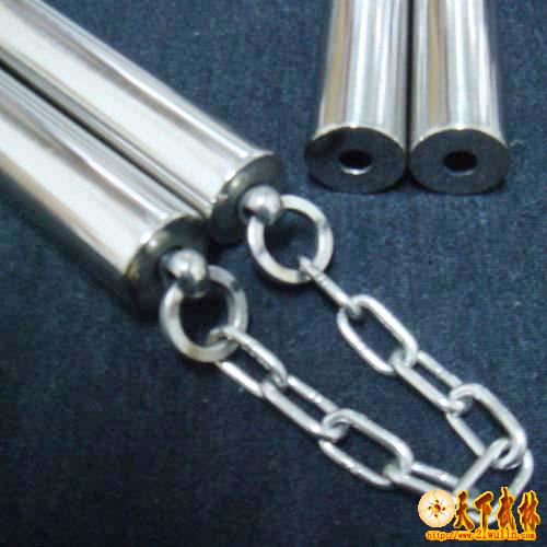 宝贝名:“旋风3号”双节棍--350克 材 质:201不锈钢 棍 长:28CM 链 长:18CM 直 径:2.5CM 壁 厚:1.2MM 重 量:350克 原 价:70元 现 价:55元