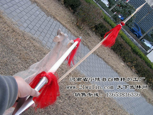 1、枪杆由精加工白腊杆制成,两头完全一样粗,直径2.8厘米,选用优质上等白蜡杆为原材料,充保持了白蜡杆本身所天然的"有弹性而折不断,有韧度却不变形,有力度而不震手"等柔而不折、坚而不硬的特色。 2、枪头为不锈钢材质,硬度韧性特别好,枪管两端双环铜箍,传统流线形造型,美观大方,全长约25厘米。 3、枪缨为双幅加厚尼龙丝。颜色为红、白、黑,可任选其一。白蜡枪杆上挑朱红缨,挥舞之时红缨婆娑,令敌难辨枪矛之最终一击。 4、钢珠为绿豆大小的铁砂,约30颗左右。