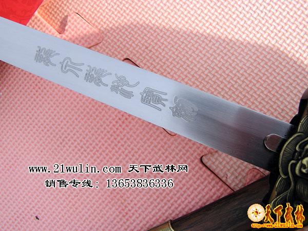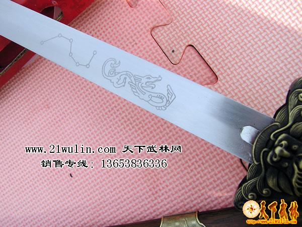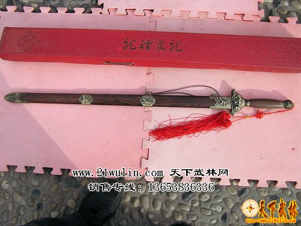 龙泉宝剑 热卖男女通用型不锈钢太极剑练习专用剑 武术剑参考规格:刃长:77cm柄长:20cm刃宽: 3.4cm 武术剑刃材:铁素体不锈钢,保持长期不生锈,方便保养,未开刃武术剑鞘材:花梨木武术剑配装:合金装武术剑重量:带鞘2斤左右,不带鞘1斤1两左右,专为武术练习用而设计,手工产品没有绝对重量,此重量仅供参考!武术剑工艺:抛光武术剑图片: