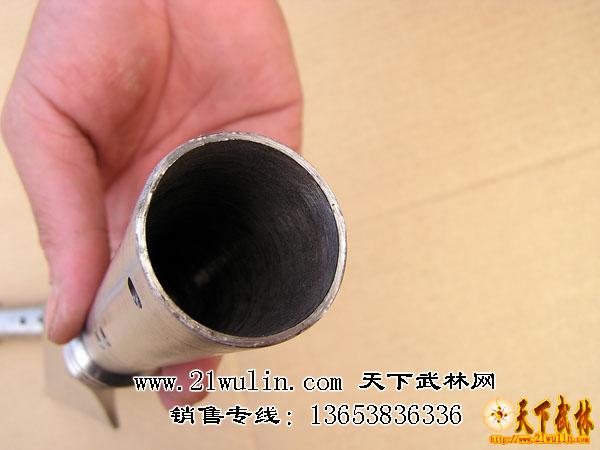 全为一体纯不锈钢枪头,中间没有经过任何焊接,是整个纯不锈钢柱体经数控车床磨制而长,经久耐用、超级结实,外观造型美观,线形感强,长40厘米,重两斤多。