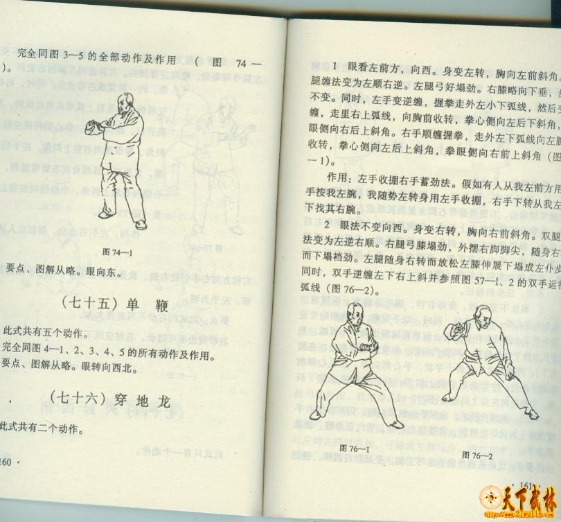 2、 因每一动作都有规范,“差之毫厘,谬以千里”,必须做到 “无过不及”,是以将每一动作在公转上的正旋、反旋,上、下肢的 顺、逆缠法,足的步法,手的位置,手指手心的方向都作了解释,使 学者一目了然。