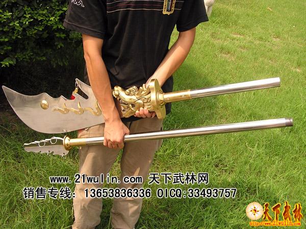 品名:折叠式全不锈钢极品彩云春秋大刀E型:加厚加重龙头 配彩云 加重刀攥 重13斤