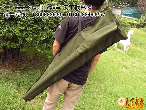 极品折叠式全不锈钢彩云春秋大刀E型: 帆布携带包,图为携带时的全景