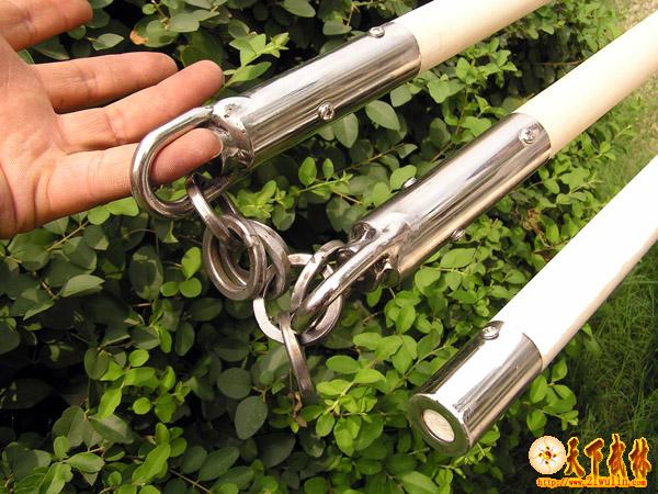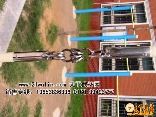 极品白蜡杆三节棍:特殊的不锈钢加厚链子,牢固无比。