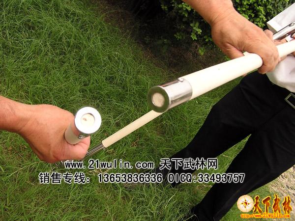 极品白蜡杆三节棍:棍尾 ,采用不锈钢套包裹,永不开裂!