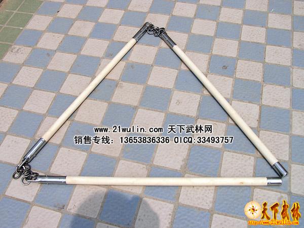 品名:极品白蜡杆三节棍 棍体: 精加工两头一样粗宁陵正品白蜡杆 棍长:每节80CM 直径:3.0厘米 附件: 不锈钢 链长:18厘米 棍套长:10厘米 重量:大约4斤左右 价格:280元每幅 武林商城在线购买请点击:/wlshop/goods.php?id=1735