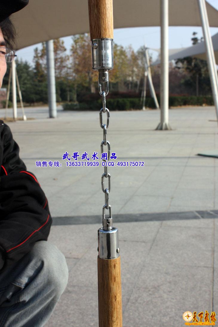 ·极品白蜡杆三节棍 加粗不锈钢链条 包