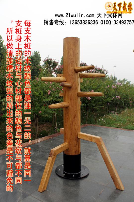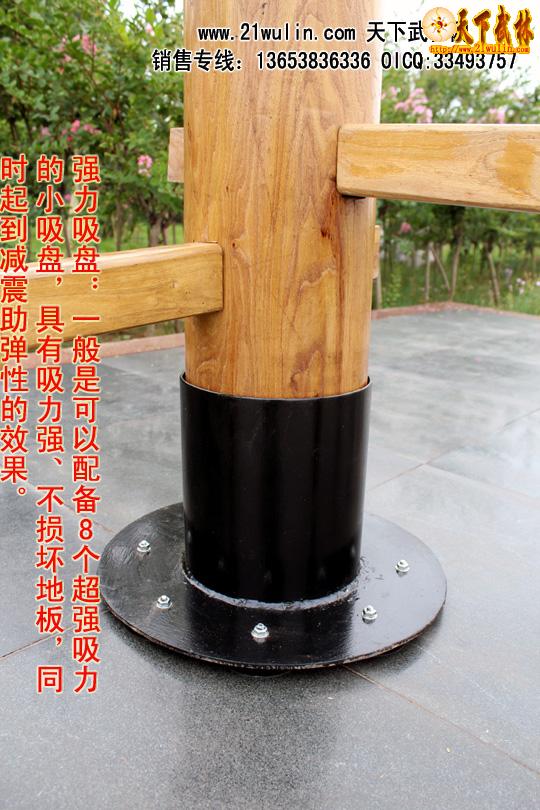 立柱式木人桩均由野生硬质木材(优质的槐木和榆木)精制而成,所有木材均经过微波干燥杀虫设备彻底烘干和杀虫处理,产品保证不开裂、不变形、不虫蛀。其造型美观,工艺精良,是武术爱好者的首选器材。木人桩是武术爱好者的练功对手和靶子,特别适合单人练习,能使使用者功力增进迅速,命中率和击打份量明显提高。是单人练功的必备器材。立柱式木人桩适用于地方狭小的室内安装,四角用膨胀螺栓固定在地面上。