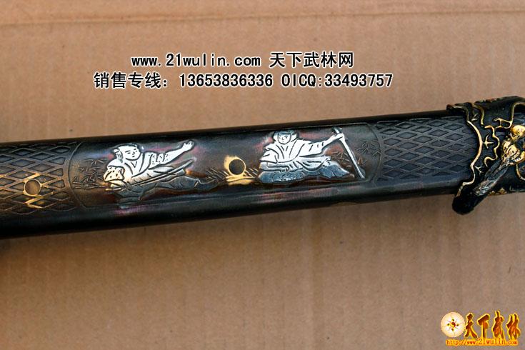 规格:全长105CM 柄长28CM 刃长72CM 鞘长77CM 厚0.7CM 宽3.18CM