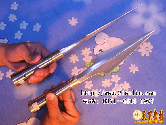 上图为安装好的游龙武术枪D型,从左到右依次为一、游龙武术枪D型:带黄皮枪杆+25厘米不锈钢枪头,二、游龙武术枪D型:带黄皮枪杆+30厘米不锈钢枪头,三、游龙武术枪D型:带黄皮枪杆+35厘米不锈钢枪头