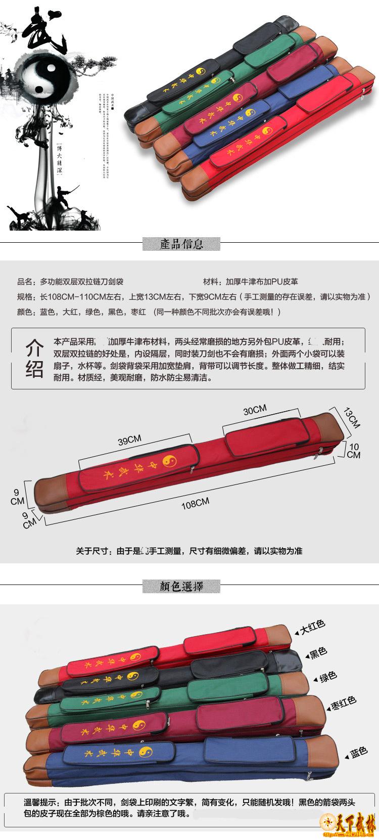 太极剑袋太极剑剑套多功能双层刀剑袋武术剑套剑包加厚牛津布 带棍包黑色