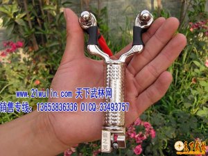 大漠痴鹰 技术参数:Y字型弓架采用不锈钢材料 紧固头螺丝螺杆采用不锈钢材料 弹匣采用45号钢材 弹匣容量28发 钢珠直径8毫米 紧固头和皮碗采用头层牛皮 皮筋采用3050型号的高弹纯乳胶 皮筋长度18厘米 拉力20公斤 可发射 钢珠 飞箭 飞镖