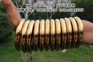 钛金版洪家铁环/铁线拳/铁手环/金刚圈/铁臂功/桥手环 名称:洪家拳铁手环 规格:大号:12.5厘米(外径),内径9厘米 材质:钢质镀钛金 重量:每个重600克左右 价格:35元/个 铁桥功:原为南拳之传统功法,后为习霸王鞭拳法者所获。糅以本门秘传内功,又糅之少林绝艺与