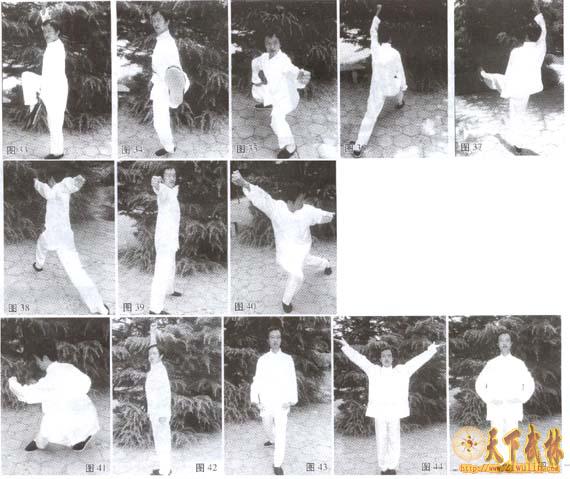 要领:收坍寸动作要柔和缓慢;放松自然,全身不再贯劲。