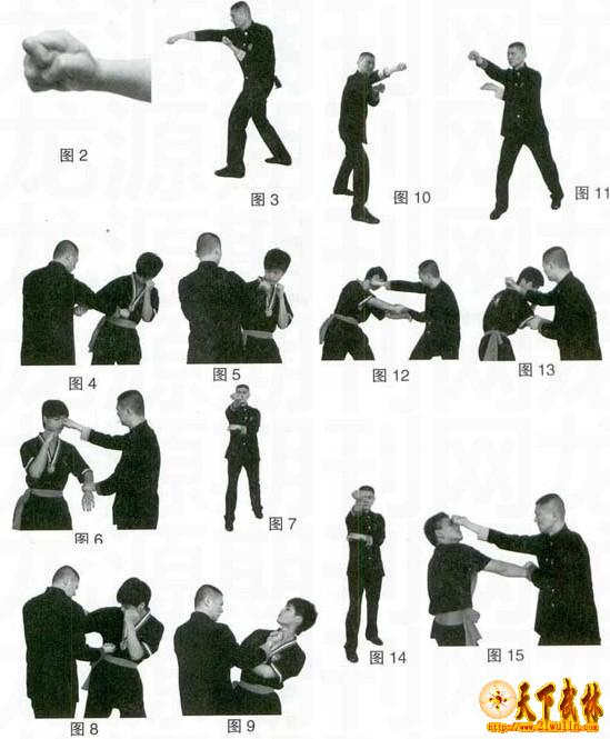 用途:击打对手咽喉、下颏、乳根等部位(图8,图9)。
