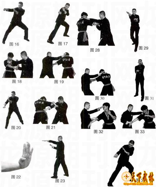 用途:多用于攻击对手头面部及肩、臂连接处(阿18。图19)。