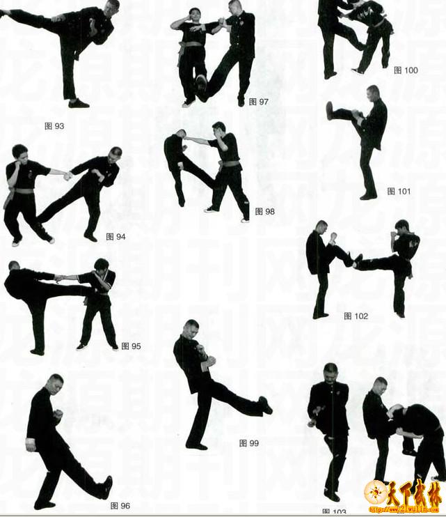 用途:踢击对手下颏、心窝、肋部、大腿及膝关节(图94,图95)。
