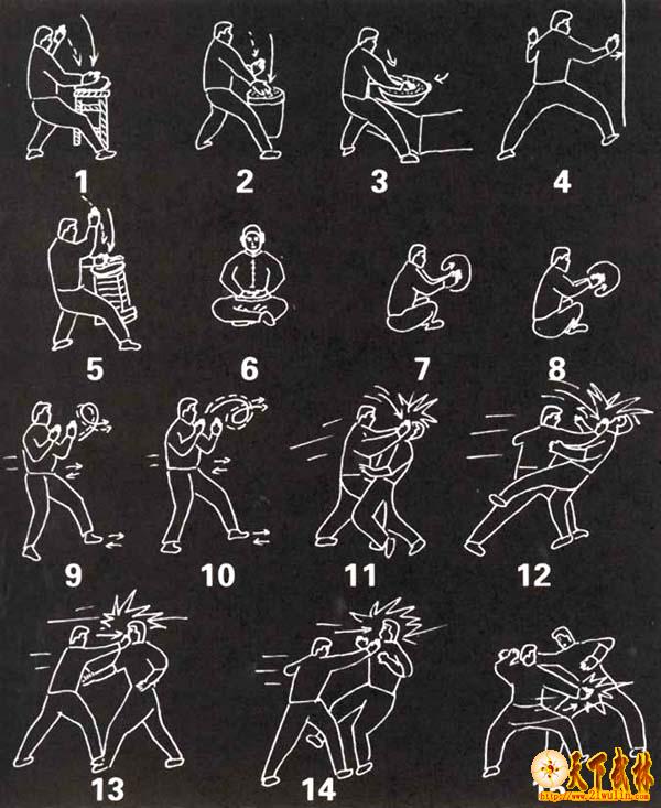 以上数例,已列出了全方位的掌击攻防方法,运用纯熟,可起到一招制敌、一击必杀之神效,望有缘习者珍之,习之,慎用之!
