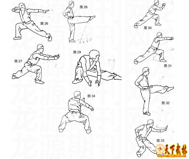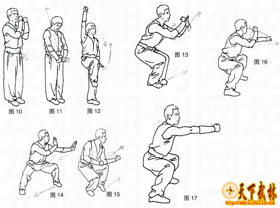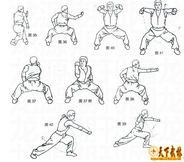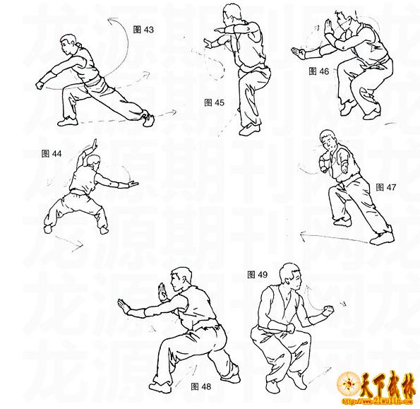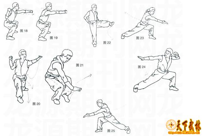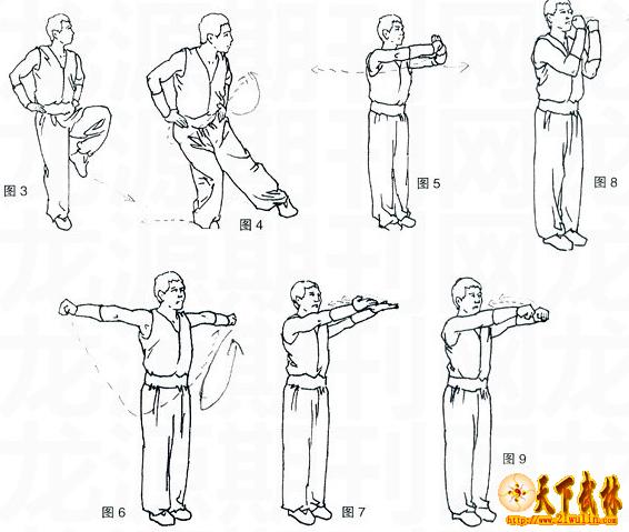 2、动作要连贯,配合要协调,右脚上步要成直线,左脚迈步要与马步成直角。