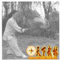 要点:反甩拂尘要迅猛和顺,要善于借用腰的惯力。手与腰要活,步法变换要灵活,与整体动作融为一体。