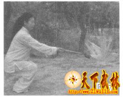 要点:撩击拂尘要快速,力贯拂尘梢。要外形似柔,刚藏其内。在走势中,丹田沉气暗送内劲,以意导气。