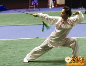 胡晓玲的一招一式无不显露出武当嫡传功夫的境界。 胡晓玲6岁师从国宝拳师赵剑英,8岁独自登台参赛,10岁就取得郧阳地区武术比赛拳、剑、棍三个项目的冠军而此次首度参加世界传统武术锦标赛的她,更是巾帼不让须眉,在首日进行的女子D组剑术比赛中,以娴熟稳健的玄门剑 |