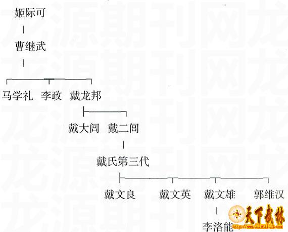(2)传说中戴龙邦有两子,大闾二闾,以及戴龙邦孙子和重孙子很难查到。为了说明辈分,戴儿子还是用传说中的大闾二闾,到孙子辈写成戴氏第三代。有传说,李洛能拜戴文良为师,文良有弟二人妹一人,我把他们写成戴氏第四代。这样形成戴氏家族有四代人传练“心意拳”。