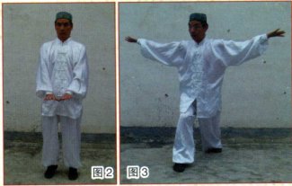 双足分开,与肩同宽,双脚尖向前平行,脊正直站立,双手五指向下,头上顶,肩下沉,身体左有重心应于两脚之间,前后重心则至于脚掌与脚跟之间,双膝微屈,小腹松园,尾闾中正,头顶颈竖,双目亦可平视,口诵太斯米,有以一念代万念,认主独主一之意。