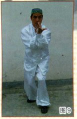 (注:以上盘法连环不断演练,收势用并步“噫”力,风凰展翅,“接嘟哇”,作为收势。)