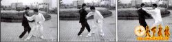 (接上期) 第九式龙形裹横 龙形裹横,马先生示范,右足横行于对方身后,锁其左腿的同时,右臂平横在对方的胸腹前,左掌扶贴于右小臂阴面。继而,双臂合力,一起从左向右平行横捌,由于失去平衡,对方必然应声而跌。 心意拳龙形裹横之法,练的是横捌之劲,其有三式:一是 |