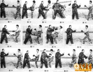 第一部分 意拳走步拳法 一、意拳走步拳法概要 在意拳定步拳法训练有了相当基础之后,我们就要结合步法进行走步的拳法训练了。从实战的角度来讲,走步拳法训练更能有效地培养灵活多变的身法、步法及实战时一触即发的综合感应,是意拳实战训练必不可少的有效方法。 二、意