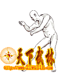 以上勢將右拳猛力下按,同時兩足尖亦同時蹬地,乘勢上躍全身淩空,兩手先向右鼓動,上身向後仰,以左翻身至原起出落地,此即全身之旋風也。