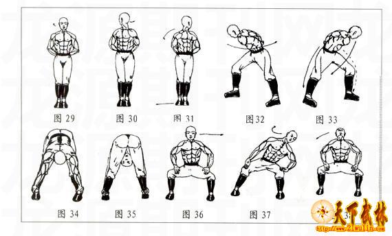 反复练习上述动作九次后,放松身体,全套功法即告结束。