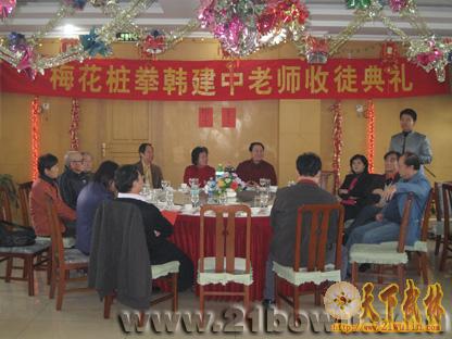 | 原中国公安大学教授、北京梅花桩拳研究会会长、著名武术家韩建中收徒仪式于2007年11月17日在北京举行。
