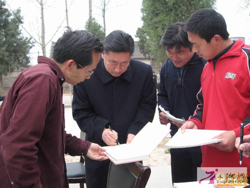 前来采访大师的温县电视台记者看到眼前的情景,既无奈又感动。那位美女主持人也乘机找来一本《陈氏太极拳》,请大师给签了字。唉,近水楼台先得月啊。