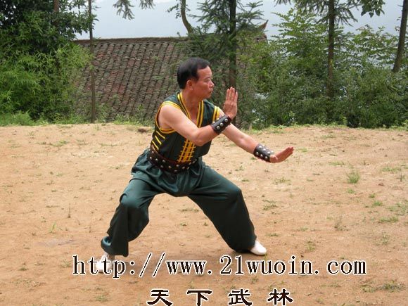 梅山拳(梅山功夫)简介 梅山,春秋战国时称为“梅山蛮”。地处长沙、益阳之间。梅山拳相传为北宋期间梅山洞主赵天祥所创,后经历代传人发扬光大,现已具有较为完整的理论体系和技术套路体系,为湖南著名拳种之一。 梅山拳有其独特的理论及技法风格。梅山拳不追求花架子,十分注重散打实战功法。其拳谱云:“冲拳如三角,挑拳似牛角。相打紧迫前,掌法如刀镰。上用打,下用穿,左右开攻打两边。上打如雪花盖顶,下穿似古树盘根。” 梅山拳法讲究五行变化。灵活运用刚、柔、直、横、斜、虚、实七种劲力。其手法有冲、贯、扣、盖、横、砸、挑、撩及擒拿手、封闭手、砍手、劈手、标手、压书、接转手、抓手、摆手等。其肘法有靠、横、直、挡、撞、架顶等十多种。其腿法有弹、踹、蹬、铲、踩、挂、扫等。梅山拳技法多样,实战中施展起来变化无穷,令人目不暇接。 梅山拳十分强调桩功练习。其桩功以“坐、箭、丁”三种为主。坐桩有上、中、下三盘之分,其姿态如三点梅花“品”字形;箭桩多用九点游龙步,其前弓后箭务必做到十趾抓泥。其丁桩要求虚实分明:丁腿脚尖点地为虚,支撑腿全掌着地为实。“立如钉”,是丁桩追求的至高目标。经常练习这种传统功法,可使人功力日进。 此外,梅山拳的格斗散招也有其独到之处。其冲拳、贯拳、盖拳、横拳等几十种拳法,在实战运用时均有许多讲究。例如盖拳,有单双之变,阴阳之分,阴单盖拳、阳单盖拳,阴双盖拳、阳双盖拳。阴单盖拳的技法要领是一手握拳,以大臂带小臂,由曲到伸,向前盖击敌方头部;力达拳背,拳心朝上;另一拳则收防于胸前,当敌方来拳攻击时,前拳开路击开来手,后拳由胸前挥出盖击敌方头部。故其拳谱云:“阴单盖拳为翻天一火即,阳单盖拳如雷击空心树;阴双盖拳似泰山压顶,阳双盖拳如猛虎扑食。”足见其拳势之威猛。 梅山拳独特之处很多,不一而足。现在,梅山拳已列入《中华拳械录》,在1985年5月徐州全国武术比赛中荣获“雄狮”奖,被誉为武林的“奇葩魁秀”。