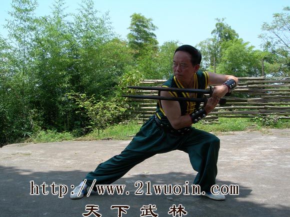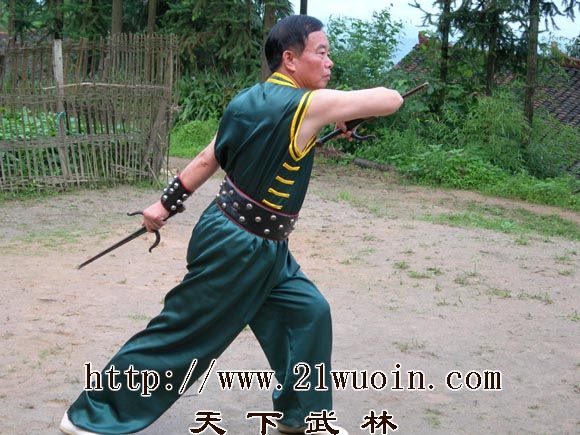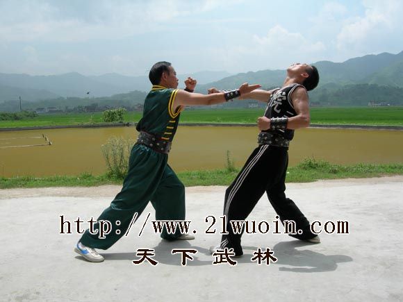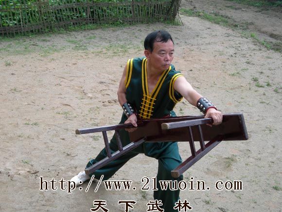 二、对练套路: 1、 双刀对扁担 2、 板凳对齐眉棍 3、 徒手对练 4、 梅山功夫实战技击