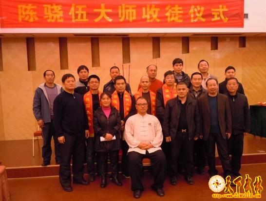 2011年12月23日,是槐园太极拳社又一个骄傲的日子,在这圣诞平安夜即将到来的前夕,在这个欢庆的日子里,台州中天大酒店举行了“中国太极拳名家陈骁伍先生收徒仪式”,台州社会各界名望人士出席见证了这次槐园太极拳社传统收徒仪式的全过程,正因为太极的独特魅力,也正因为陈骁伍先生在太极武术界的巨大影响力,使得这个以经济发达著称的新兴城市所举办的收徒仪式,也显得传统庄严、场面大气。
