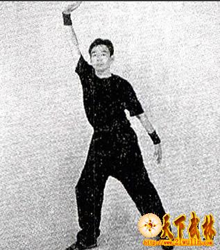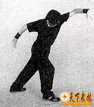 1.四指握拳势 【练法】 双腿立定,宽如肩阔。眼向前平视,牙关咬合,嘴唇闭住,舌舔上腭。两手握拳,拳心向后(或可向下),大拇指尖贴住大腿。 每呼吸完毕,拳握一紧,不能放松。愈握愈紧,即每当呼气两拳愈握愈紧,再吸气时两拳不要放松原来的紧度,再呼气时尽可能加强两拳的紧度。直至36次呼吸完毕,才可放松(图1)。 【要点】 肩要沉,胸勿挺,引气下沉丹田。行之数月手力自然增加。 初练先做6次呼吸,两手即放松,以后逐渐增加。总要自然,不得勉强。 2.双掌下按势 【练法】 双腿立定如前势。眼向前平视,牙关咬合,嘴唇闭住,舌舔上腭。两手掌左右下按(按于身旁两侧,不可贴身,但也不要过远),掌心向下,掌尖向外,左右手指翘起。 掌愈按愈下,即在每次呼气时两手掌尽量紧张地按下,不能放松,至36次呼吸完毕才可放松(图2)。 【要点】 本势增长手力腕力。沉肩,含胸,气沉丹田。掌下按时手指翘起。按下时切记要保持膝节不屈。 3.双掌前推势 【练法】 双腿立定如前势。眼前平视,牙关咬合,嘴唇闭住,舌舔上腭。两掌向前推出,掌心向前,腕节内挺,臂高同肩,两掌大拇指与食指尖相对成三角形。 每一呼吸完毕,双掌前推,手指同时拗入。愈推愈前,愈拗愈入(近身),直至36次呼吸完毕才可放松(图3)。 【要点】 本势增长手力与指力。初练次数、方式可仿前势。 手臂微屈,气沉丹田,手指拗入。练此势前最好活动一下手指关节。 两手掌推出前不能大幅回收,要求原位暗劲推出。推出时躯体不可前俯后仰,务令在紧张的状态下保持平正与宁静。 4.左右托掌势 【练法】 双腿立定如前势。眼前平视,牙关咬合,嘴唇闭住,舌舔上腭。两手掌左右平伸,掌心向上,掌尖向外,臂高同肩。意想有重物置于两掌之中,需要用意托起。 每一呼吸完毕,用意把掌上托。只用意念,两掌均不动,愈托愈重地继续下去,练至36次呼吸可止(图4)。 【要点】 本势增长臂力。沉肩,收胸,气沉丹田,双手伸平,不要下坠。 两掌托起重物只是意想,诱导两掌及前臂的肌肉渐渐紧张起来,不要使两掌的位置有任何移动。 5.双掌开合势 【练法】 两腿立定如前势,眼前平视,牙关咬合,嘴唇闭住,舌舔上腭。两手合十当胸,掌尖向上,掌心相合,腕节外挺、下沉,两大拇指贴身。 吸气时两手渐渐分开(两大拇指沿身移动),呼气时两手渐渐再合,练至36次呼吸可止(图5、6)。 【要点】 沉肩,含胸,气沉丹田,两手开合时手指拗出,大拇指轻轻贴身,不离肋,不提起。 本势合掌当胸,连续开合,能使肺部一张一缩,无病者练之健肺强身,若有肺病者还可有良好的调养效能。 专用本势可以治疗一些慢性病,如肺结核、慢性胃肠炎等。但练习时一定要注意呼吸的松静、柔和、均匀,如若过猛,有病之身必再受创。 6.左右撑掌势 【练法】 双腿立定如前势。眼前平视,牙关咬合,嘴唇闭住,舌舔上腭。两掌分左右撑开,掌心向外,掌尖向上,臂高同肩,指尖拗向头部。每一呼吸,双掌渐渐撑紧,愈撑愈紧,如是连续36次呼吸,直至完毕才可放松(图7)。 【要点】 本势增长臂力和腕力。沉肩,含胸,气沉丹田,保持均匀的腹式呼吸。双掌撑开时,身体要保持正直。 7.双掌上撑势 【练法】 双腿立定如前势。牙关咬合,嘴唇闭住,舌舔上腭。双手反掌向上正撑,掌心朝天,两掌大拇指与食指相对成三角形,面门向天。手向上撑高,愈撑愈上,直至36次呼吸完毕为止(图8)。 【要点】 气沉丹田,头上仰,眼看手背,胸腹不可凸出,手指拗落。 本势增长臂力和腕力,强健颈项,并可动胃调肠帮助消化,驱除胸中浊气。 8.双掌下垂势 【练法】 双腿立定如前势。牙关咬合,嘴唇闭住,舌舔上腭。两掌自然置于身侧两旁。 上身向前慢慢弯曲,两掌轻松下垂(掌心向后为宜),两肩微微松沉,不用拙力(图9)。 身下弯时呼气(两手与上身一同下垂),起立时吸气(还原站势)。两掌愈垂愈下,如不觉疲劳可连续36次呼吸乃止。 【要点】 沉肩,收胸,气沉丹田。呼吸如过于急速,起立时立定可再行一呼一吸后再下垂。动作不能过猛,宜悠宜匀。 本势增长腰力和腹力,并对减少腹部过剩脂肪有特效,能减腹脂、收细腰围。如腹部脂肪过剩,每日习之一月后可收大效。 以上8势为熊氏易筋经第一级练法,第5势和第8势两势略有动作,余势无动作。第一级练习时不可无力,无力则练而无功;不可过猛,过猛则多耗伤力,且易丢功。务要纯任自然,久习则气力不期而自至。 9.弓步拗身势 【练法】 本势有左右两势,以右势为例说明。 右脚向右踏开一步,成右弓步势,身体向右拗。右掌置背后,左掌置头前,两掌心皆向外,两腕节皆外拗。眼看左脚跟,脚跟不要离地。此势站成,意在腰腹,牙关咬合,嘴唇闭住,舌舔上腭,练习36次呼吸(图10)。 【要点】 因为身体扭转,腰部肌筋必然紧张,多习此势腰力雄健异常,并对腰痛病有良好转化作用。 功夫加深后,可以渐渐增加腰节扭转度。或可直接增加,即在一开始时就达到一定扭度,这样呼吸时全身均不再动。或者在每一呼气时渐增扭度,但不可过猛。双掌伸开幅度可大些可小些。 左势与右势只是左右拗身不同,其他相同。本势弓步拗身叠骨,若童年练习更显奇功。 10.握拳上仰势 【练法】 本势有左右两势,以右势为例说明。 双腿如前,成右弓步,身躯挺直。右手握拳提高,屈肘置头上,拳心向下,头节上仰,眼看右手心;左手握拳垂下,与地面成45度,并向稍距左胁后侧方拉下,拳心向后。牙关咬合,嘴唇闭住,