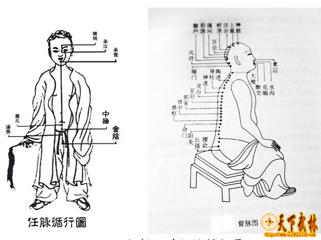 | 打通任督二脉---少林六合功周天行气呼吸法 文:潘霜喜 气是练习少林六合功的根本,内练一口气是历代武术家毕生的追求。《庄子•刻意》:“吹呴呼吸,吐故纳新,熊经鸟伸,为寿而已矣。”练习少林六合功时呼吸讲究:气气归脐、寿比天齐;哈字一声、长生不老。即动作配合呼吸,气蕴丹田,吐故纳新。呼气时以哈音震动心包经,畅通心脉,心脉通百脉通。六合贯通,三维相代,内外环境协调统一,形神相聚,达延年益寿之效。(丹田在人体任脉神阙穴(肚脐眼)与督脉命门穴的前后连线中点处。《道经》谓此当上下左右之中,其位象极,名为“丹田”。) 为了便于大家了解气在脏腑功能中的升降机理,下文从中医学的角度探讨少林六合功吐故纳新的呼吸方法。气包括宇宙中的天地之气和人体的先天之气及后天之气(水谷之气),概括为两个含义:一是构成人体和维持人体生命活动的精微物质,如呼吸之气,水谷之气,二是指脏腑组织的生理机能,如脏腑之气、经络之气,但二者都是互相联系的,前者是后者的物质基础,后者是前者的功能表现。 人体之气循经络系统运行周身,内属脏腑,外络肢节,具有防御外邪侵袭机体,固摄体表气血津液,温煦机体的作用。古医家为了明析气在体内的升降出入特列出三焦学说,即胸隔以上心肺、上肢头面为上焦,脐以上脾胃、肝胆为中焦,脐以下肾、膀胱、女子胞(子宫)、下肢为下焦。分别以上焦如雾,中焦如沤,下焦如渎来形容各自的功能状态。上焦肺主气,司呼吸,吐故纳新。中焦脾胃为气血生化之源,运化水谷精微之气,升清降浊。下焦肾藏精,主纳气,即气沉丹田。 任督二脉经络循行图 六合功周天行气呼吸之法:以舌舐上腭,立身中正,神隐于形,呈和和之态。鼻吸清气,行于任脉,至脐下丹田,过会阴穴,上走督脉,经腰间命门穴,上达百会穴,下至人中穴,以口呼出浊气。如此练习,动作、呼吸、意念三者合而为一。图示(任、督二脉图)。 《针灸大成》:任脉起于中极之下,以上毛际,循腹里上关元、至喉咙,属阴脉之海,以人之脉络,周流于诸阴之分,譬犹水也,而任脉则为之总会,故名曰阴脉之海焉。用药当分男女,月事多主冲任,是任之为言妊也。乃夫人生养之本,调摄之源,督则由会阴而行背,任则由会阴而行腹,人身之有任督,犹天地之有子午也。人身之任督,以腹背言,天地之子午,以南北言,可以分,可以合者也。分之以见阴阳之不杂,合之以见浑沦之无间,一而二,二而一也。但在僧道,不明此脉,各执所尚,禁食、禁足、禁语、断臂、燃指、烧身,枯坐而亡,良可悲夫!间有存中黄一事,而待神气凝聚者;有运三华五气之精,而洗骨伐毛者;有搬运周天火候者;有日运脐,夜运泥丸炼体者;有呼九灵,注三精而归灵府者;有倒斗柄而运化机者;有默朝上帝者;有服气吞霞者;有闭息存神者;有采炼日精月华者;有吐纳导引者;有单运气行火候者;有投胎夺舍者;有旁门九品渐法三乘者,种种不同,岂离任督。盖明任督以保其身,亦犹明君能爱民以安其国也。民毙国亡,任衰身谢,是以上人哲士,先依前注,导引各经,调养纯熟,即仙家之能筑基是也。然后扫除妄念,以静定为基本,而收视返听。含光默默,调息绵绵,握固内守,注意玄关,顷刻水中火发,雪里花开,两肾如汤煎,膀胱似火热,任督犹车轮,四肢若山石,一饮之间,天机自动,于是轻轻然运,默默然举,微以意定,则金水自然混融,水火自然升降,如桔槔之呼水,稻花之凝露,忽然一粒大如黍米,落于黄庭之中。此采铅投汞之真秘,子不揣鄙陋,扫却旁蹊曲径,指出一条大路,使人人可行也。到此之时,意不可散,意散则丹不成矣。紫阳真人曰∶真汞生于离,其用却在坎,姹女过南园,手持玉橄榄。正此谓也。日日行之无间断,无毫发之差,如是炼之一刻,则一刻之周天;炼之一时,则一时之周天;炼之一日,则一日之周天;炼之百日,则百日之周天,谓之立基。炼之十月,谓之胎仙。功夫至此,身心混沌,与虚空等,不知身之为我,我之为身,亦不知神之为气,气之为神,不规中而自规中,不胎息而自胎息,水不求而自生,火不求而自出,虚室生白,黑地引针,不知其所以然而然,亦不知任之为督,督之为任也。至于六害不除,十少不存,五要不调,虽为小节之常,终为大道之累。何名六害?一曰薄名利,二曰禁声色,三曰廉货财,四曰损滋味,五曰屏虚妄,六曰除嫉妬,六者有一,卫生之道远,而未见其有得也。虽心希妙理,口念真经,咀嚼英华,呼吸景象,不能补其失也。何名十少?一曰少思,二曰少念,三曰少笑,四曰少言,五曰少饮,六曰少怒,七曰少乐,八曰少愁,九曰少好,十曰少机。夫多思则神散,多念则心劳,多笑则肺腑翻,多言则气血虚耗,多饮则伤神损寿,多怒则腠理奔浮,多乐则心神邪荡,多愁则头面焦枯,多好则志气溃散,多机则志虑沉迷。兹乃伐人之生,甚于斤斧;蚀人之性,猛于豺野狼也。卫生者,戒之哉! 督脉起于下极之腧,并于脊里,上至风府,入脑上巅,循额至鼻柱,属阳脉之海。以人之脉络,周流于诸阳之分,譬犹水也,而督脉则为之都纲,故名曰海焉。用药难拘定法,针灸贵察病原。 要知任督二脉一功,先将四门外闭,两目内观。默想黍米之珠,权作黄庭之主。却乃徐徐咽气一口,缓缓纳入丹田。冲起命门,引督脉过尾闾,而上升泥丸;追动性元,引任脉降重楼,而下返气海。二脉上下,旋转如圆;前降后升,络绎不绝。心如止水,身似空壶,即将谷道轻提,鼻息渐闭。倘或气急,徐徐咽之;若仍神昏,勤加注想。意倦放