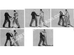 掐技是指用单手或者双手掐拿对手颈、咽喉、裆部等柔软部位以及一些要害穴位,致使其局部疼痛、麻木、丧失功能与反抗能力,从而达到控制对手的最终目的。 实用技法一掐三里穴 动作说明:双方对峙,对手用右手抓握住我右手腕,用力拉扯(图1-1);此时我迅速回拉右手,同