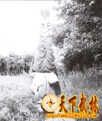 十八罗汉功为少林武功之一支,其妙处在于强身健体,功成可力顶千斤,开砖断石。此功的主要习练要点在于顶气、喷气、吞气相互配合使用。练功者须准备腰带一条,长约六尺,宽约三寸。练功前,将其系于腰间,松紧适度,以能插入二三只手指为度。 第一步:顶气之法 习练者面 |