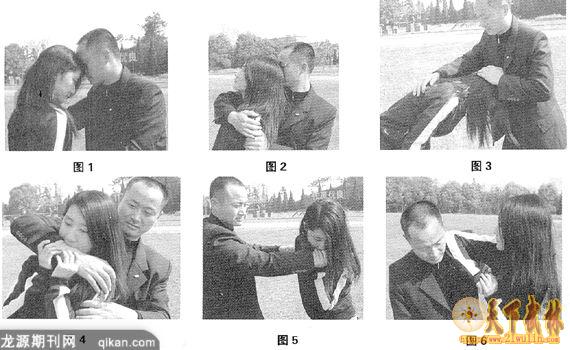 牙齿,可以撕咬食物。如果用来攻击暴力分子,那其威力定是无比。做为女子,只要一口咬住暴力分子的任何一部分,不停地摇头用力,就是再强的暴力分子也是受不住的。如用牙齿咬住由后锁喉的手腕(图4)。用牙齿咬住由前抓肩的手指(图5)。强咬之下,敌定会松手。