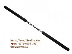 双节棍是由棍身、棍端、铁链三部分组成。双节棍可用木棍、钢铁条(管)、橡胶等材料制作,尢以硬木(檀木、像木等)最佳。双节棍全长约66厘米左右(棍长28,链10),也可根据自己身高和臂长还有握棍部位的不同而增减棍长和链长。棍身直径约2.7-3厘米,中间用一铁链或 |