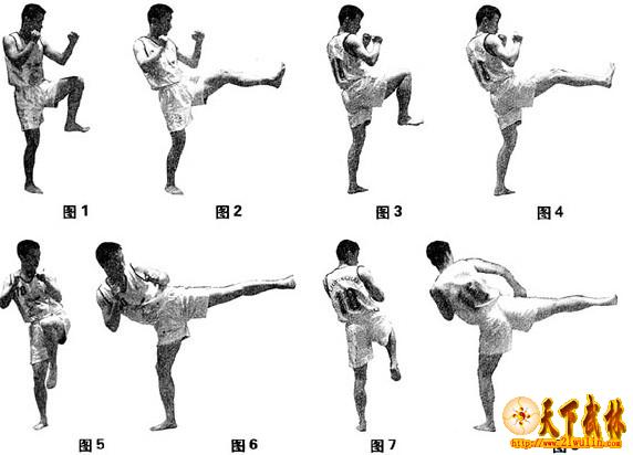 基本腿法练习的目的是掌握准确的技术动作要领,因此空击练习时,应注意动作的规范性,仔细体会动作的发力技巧、路线轨迹、击打目标等技术要领。