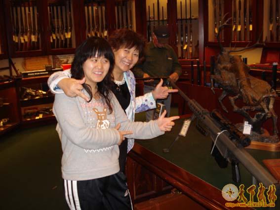 11月3日我们辗转来到了堪萨斯,Garry Huff先生是这里的具体组织者 ,他是我父亲的一个弟子,对自己的师父、师母充满了崇拜和敬 畏,对太极拳充满了喜欢和渴待。我们的到来使他也费了一番心思,为我们安排了隆重的欢迎宴会;父亲近年来几乎每年都到他的武馆,并且和这里的很多爱好者都很熟识,有几个曾经常到中国参加父亲亲自主持的国际陈氏太极拳高级培训班;所以太极拳在堪萨斯有着比较丰厚的群众基础;此次在美国我越发认识到父亲的伟大与不俗,父亲通过自己多年不懈的努力把太极火种撒在这片美丽的国土上;作为父亲的助理教练我自始自终尽心尽力的做好自己的职责,完成一个太极拳传人应尽的责任和义务;并且要象父亲一样作的更好更完善。闲暇的时间我没有忘记陪同一直在身后默默无闻付出的母亲出去逛逛;于是我和母亲出乎意料的逛了一下堪萨斯州一个卖的枪的大市场,够酷,够刺激吧!我和母亲在这个特殊的、具有特殊意义的地方做出了一个特出的姿势——用手示意枪的动态,斯种国家、斯种环境也够浪漫了吧!